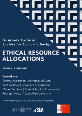 Society for Economic Deisgn - Summer School: Ethical Resource Allocations