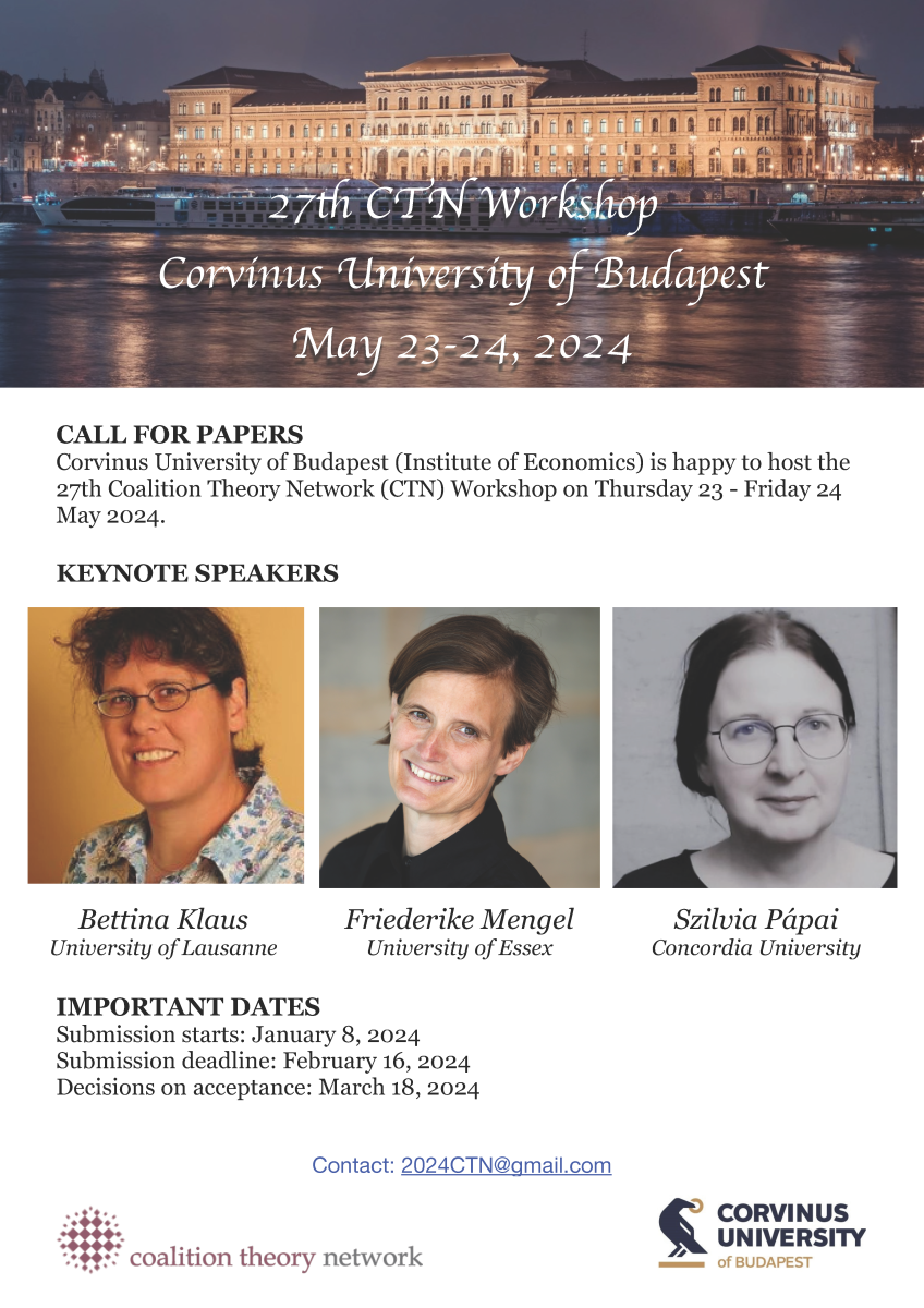 27th Coalition Theory Network (CTN) Workshop on Thursday 23 - Friday 24