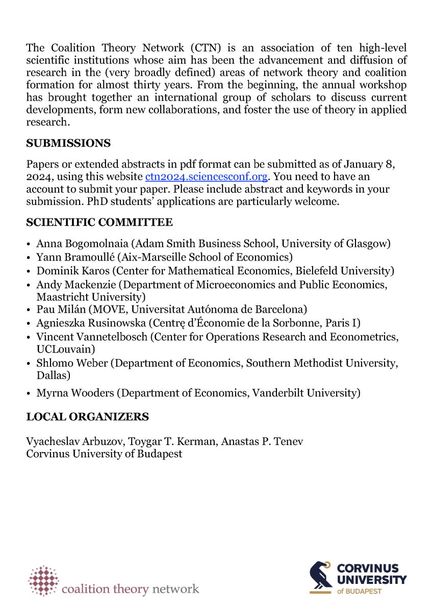 Corvinus University of Budapest (Institute of Economics) is happy to host the