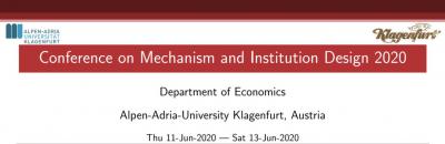 We will start accepting paper submissions from 1-Oct-2019 until 15-Apr-2020. Papers should be submitted in PDF form to cmid20@aau.at. All details are available on our website www.mechanism-design.org. Each individual can only submit one paper. Please indicate if the/an author is a (final-year) PhD student. Further Particulars As Klagenfurt is an extremely busy travel destination during the summer months, we advise all interested participants to book accommodation (through the list available on our website or overleaf) directly after submission. Bookings can be released without (significant) cost up to 14 days before the due date. Late bookings could be difficult or expensive!